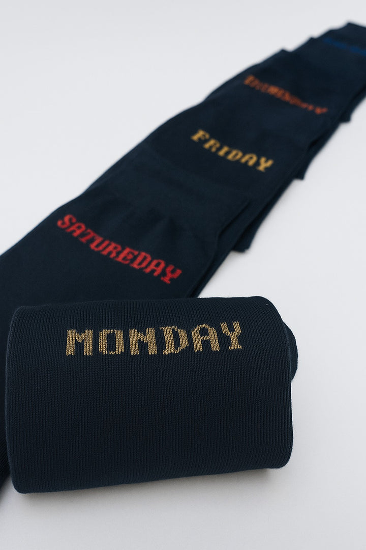 Organize your week with this stylish socks set, each pair embroidered with a weekday name. Made from soft and breathable combed cotton, these socks deliver comfort and everyday durability.