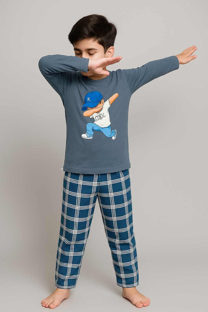 Keep your little one warm and stylish with this Boys’ Grey Pajama Set, crafted for maximum comfort and durability. The interlock cotton shirt features a playful cool boy graphic print, while the cotton fleece trousers provide cozy warmth during chilly nights
