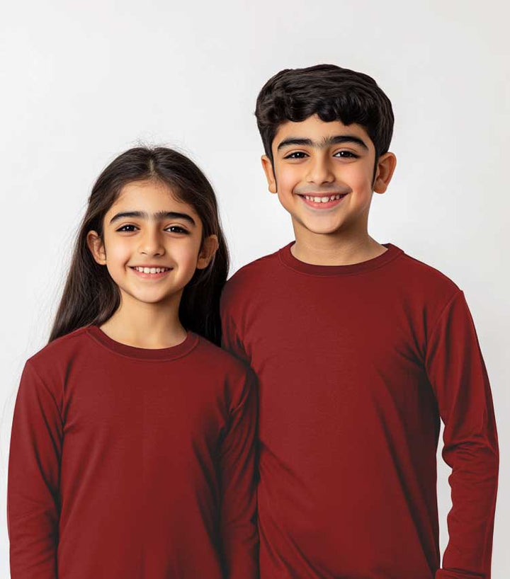 Maroon Crew Neck Full Sleeve Top for Boys