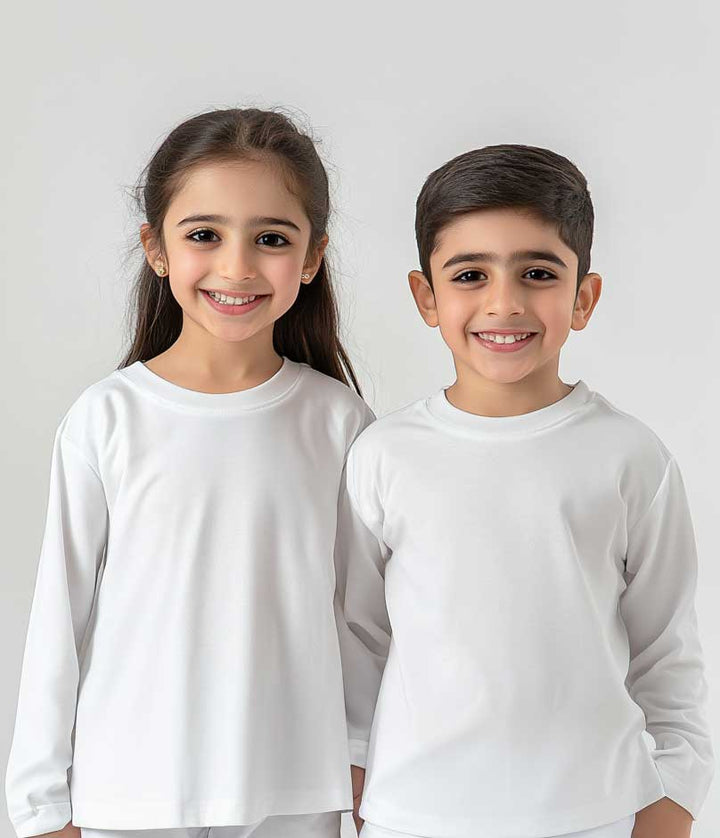 Pure White Round Neck Long Sleeve Shirt for Girls