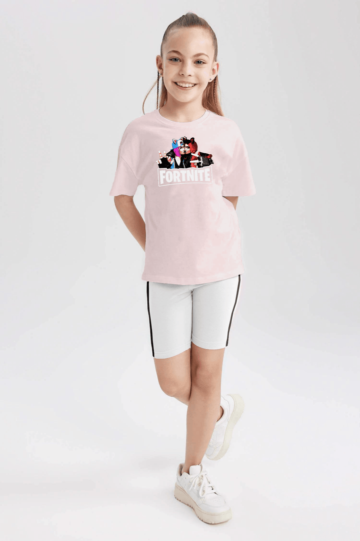 Kids suit for Summer with short sleeves and ribbed leggings made of cotton lycra