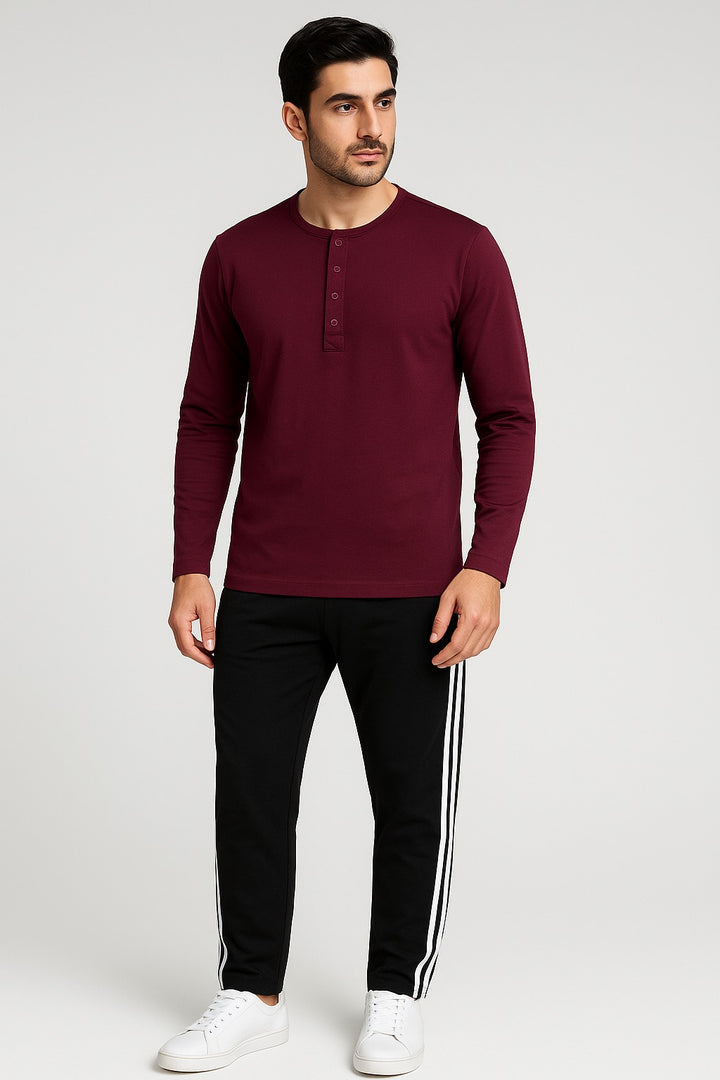 Upgrade your loungewear with this Men’s Jersey Cotton Night Suit. Designed with a soft maroon Henley shirt and black trousers, this set is perfect for cozy nights, casual wear, or relaxed evenings at home.