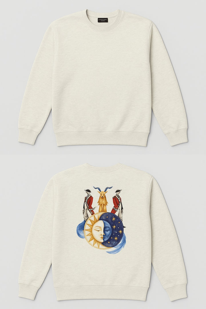 Stylish Back Print: Unique artistic design featuring sun and moon motifs for a standout look.