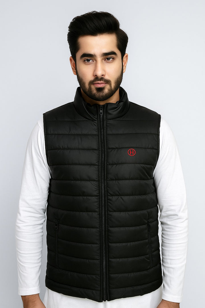 Design: Quilted puffer vest with a modern, sleeveless design.