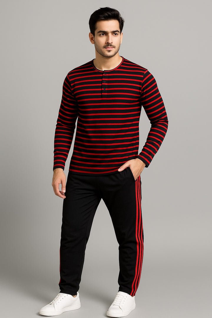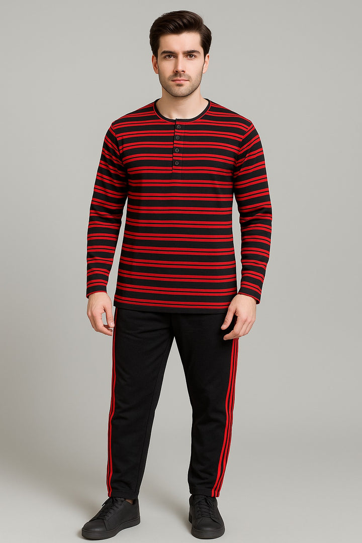 Upgrade your loungewear with this Men’s Jersey Cotton Night Suit. Designed with a soft maroon Henley shirt and black trousers, this set is perfect for cozy nights, casual wear, or relaxed evenings at home.
