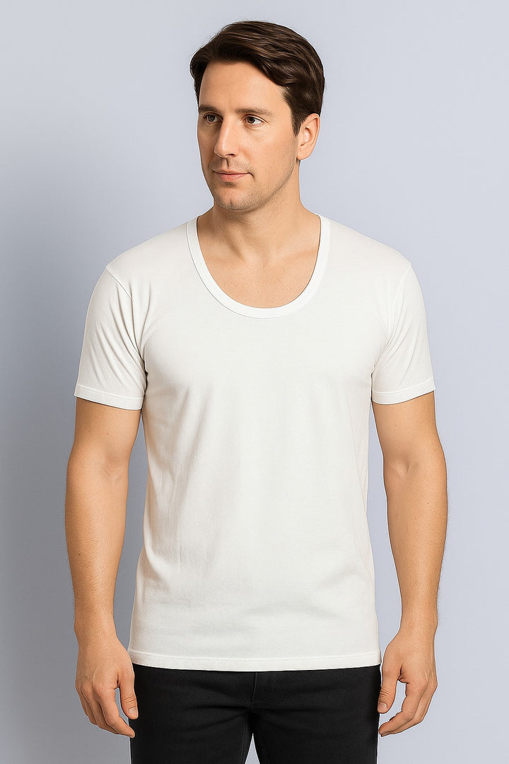 White Cotton Men’s Vest Short Sleeves Burton 805 by Hinz®