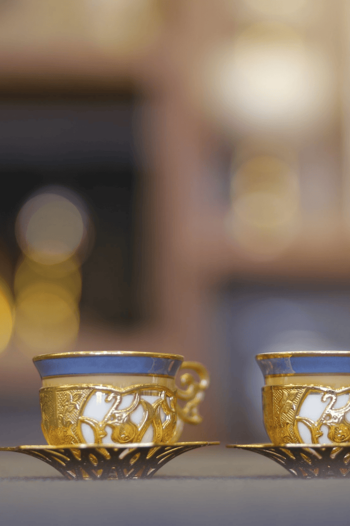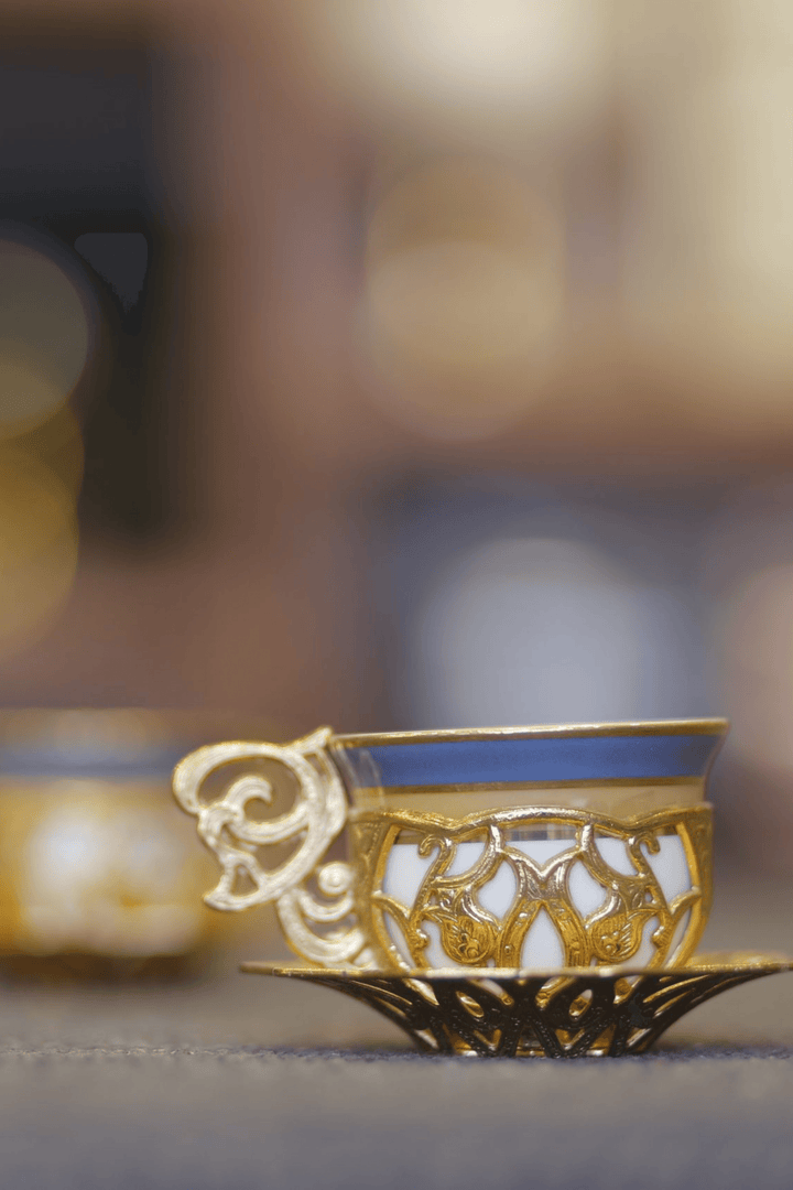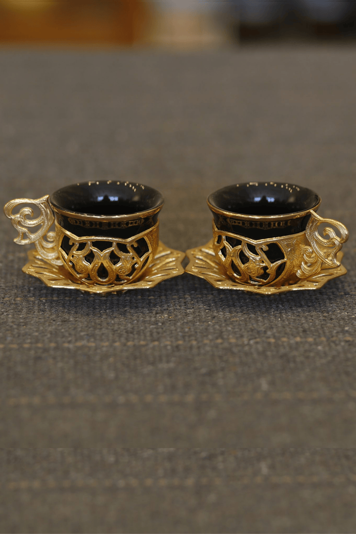Turkish Greek Arabic Coffee Espresso Cup Saucer Porcelain Set (Gold Color)