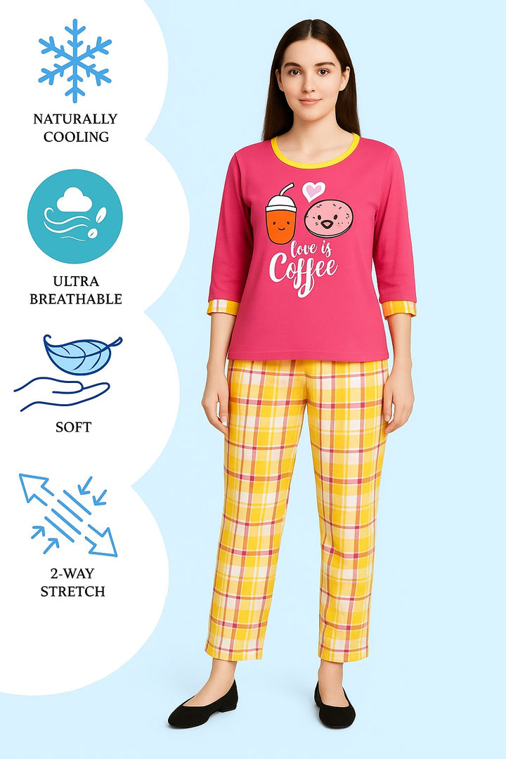 Women T-Shirt and check multi stripe trouser ( Love is coffee )