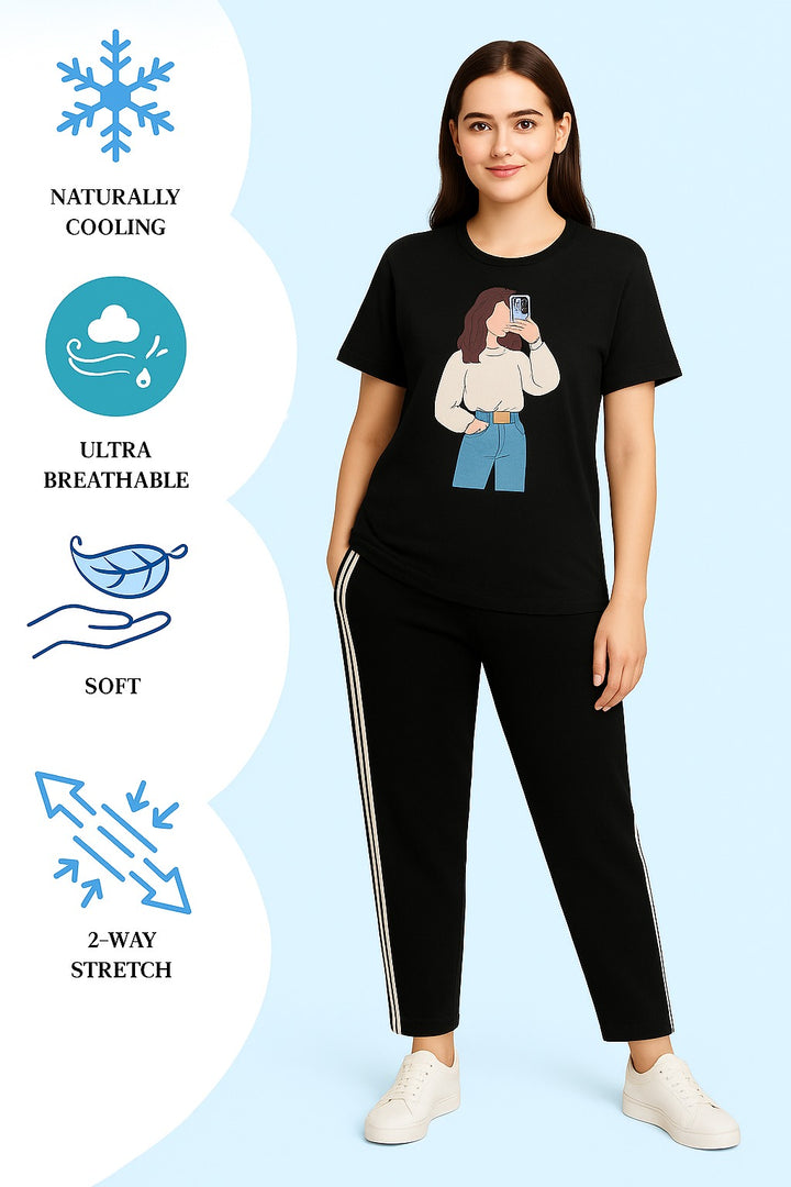 Women T-Shirt and side stripe trouser ( blue jeans girl )
