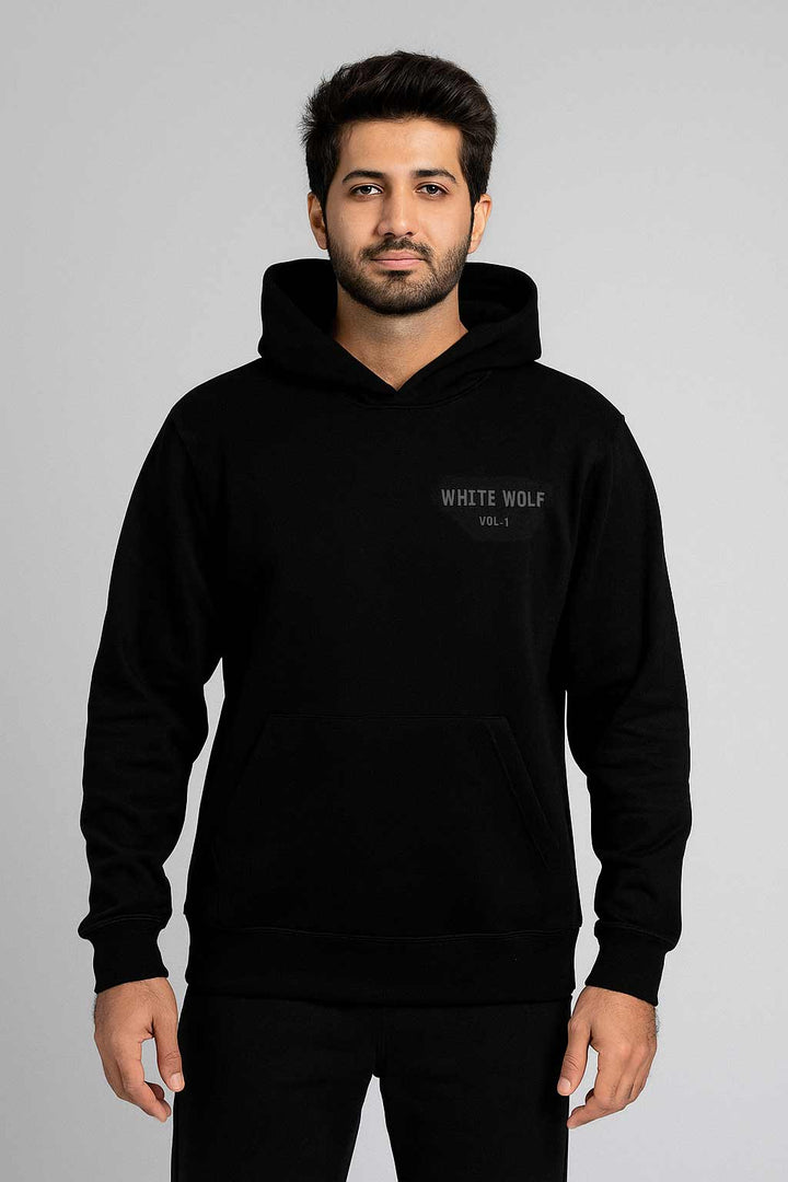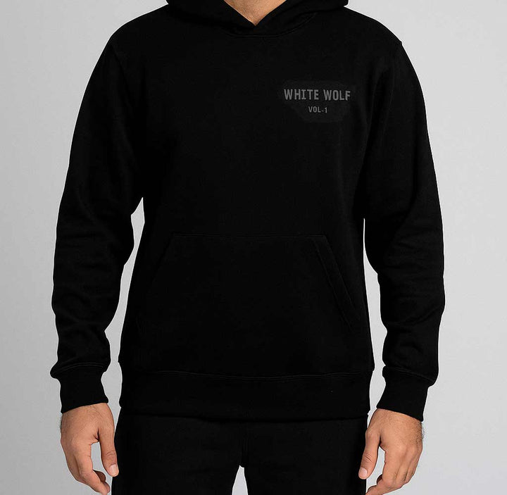 Men's White Wolf Premium Fleece- Hoodie (Black)